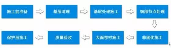 在非固化大面施工之前,應(yīng)先按相關(guān)規(guī)范和設(shè)計(jì)要求在細(xì)部節(jié)點(diǎn)部位附加防水處理,附加防水層應(yīng)優(yōu)先選用500mm寬附專(zhuān)用配套材料。 細(xì)部節(jié)點(diǎn)附加層卷材粘貼完成并經(jīng)檢查質(zhì)量合格后,即可進(jìn)行大面卷材的試鋪。大面卷材試鋪前應(yīng)在基層上彈基準(zhǔn)線(xiàn),確定卷材搭接位置,以控制卷材鋪貼的方向和順直美觀。