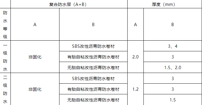 施工材料準(zhǔn)備:非固化復(fù)合防水層材料選用一覽表