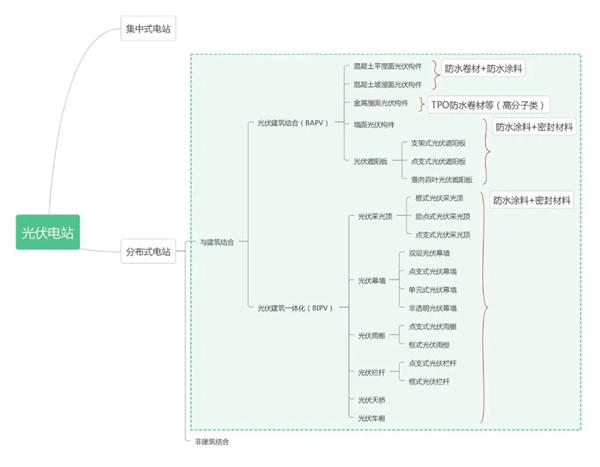 分布式光伏電站根據(jù)與建筑的結(jié)合關(guān)系分為BAPV(光伏與建筑結(jié)合)和BIPV(光伏建筑一體化)兩種。防水方案主要向這兩種推介。特別是BAPV。至于一些廠商,提到光伏就要給BIPV提供防水方案,對(duì)于BIPV,諸如光伏采光頂、光伏瓦、光伏幕墻、光伏雨棚等,本身就是建筑一部分,無法去施工一層防水卷材在其上或其下,最多提供一些節(jié)點(diǎn)密封或涂料之類。所以要明辨之。